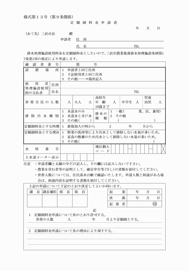 2 条例第16条第1項第3号の規定による申請は、排除汚水量認定申請書(様式第8号)によるものとする。